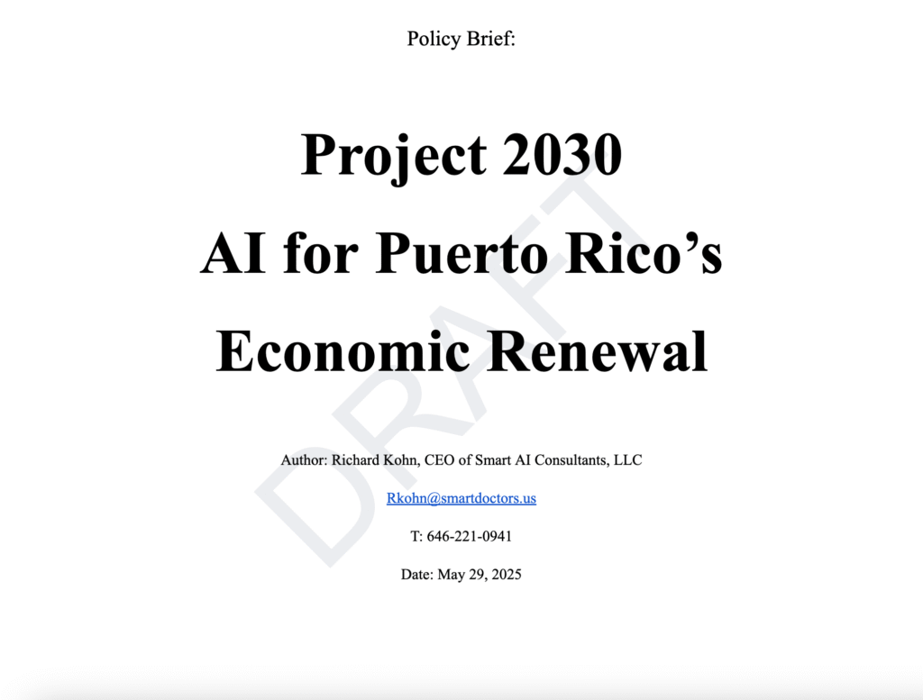 At Washington for Puerto Rico, our AI-driven strategy services empower leaders to envision and execute transformative economic growth plans. We combine advanced data analytics, predictive modeling, and deep economic insight to craft actionable roadmaps that unlock Puerto Rico’s full potential. Our strategic frameworks focus on sustainable development, investment attraction, workforce alignment, and innovation ecosystems—guiding communities and policymakers toward resilient and inclusive prosperity.